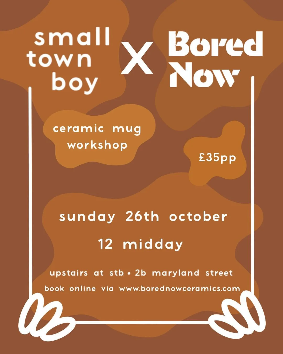 Categories: All Made to order Workshops Shop All Products All Made to order Workshops Shop All Shally Sessions £30.00 Wed 22nd Oct 12-2pm Wed 5th Nov 12-2pm Wed 12th Nov 12-2pm Wed 19th Nov 12-2pm Purchase Added! Small Town Boy Hand Building Mug Workshop 23rd Nov £35.00 Purchase Added! Custom Coffee Cup £25.00 Red Black Pink White Blue Forest Green Yellow Purchase Added! Smiley Mug (Made to order) from £22.00 View Options Smiley Coffee cup (Made to order) from £22.00 View Options Spoon Rest (Made to order) £15.00 01 02 03 04 05 06 07 08 09 10 11 12 13 14 15 16 Made to order Added! Evening Pottery Class £30.00 Wed 22nd Oct 6-8pm Wed 29th Oct 6-8pm Wed 12th Nov 6-8pm Purchase Added! Pottery Throwing Course - 5 Weeks £250.00 Choose your own date Starting Wed 3rd Sept 10-12pm Purchase Added! Beginner Wheel Throwing Workshop £65.00 CHOOSE OWN DATE/TIME :) Sat 25th Oct 10-12 Mon 27th Oct 2-4pm Mon 3rd Nov 2-4pm Mon 10th Nov 2-4pm Purchase Added!